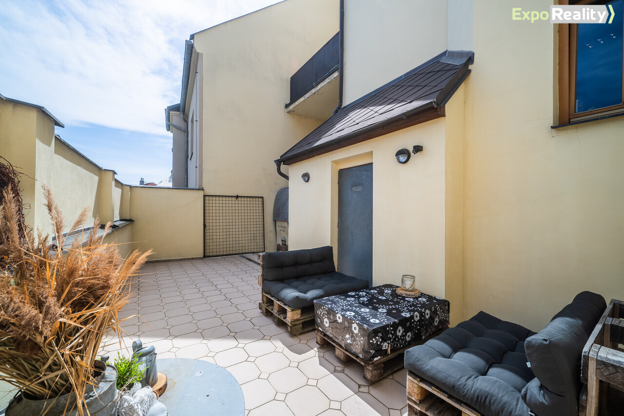 Dům prošel kompletní rekonstrukcí v roce 2004, je ve výborném technickém stavu a nabízí tři podlaží, podkroví, sklep, výtah a velkou terasu s výhledem.
