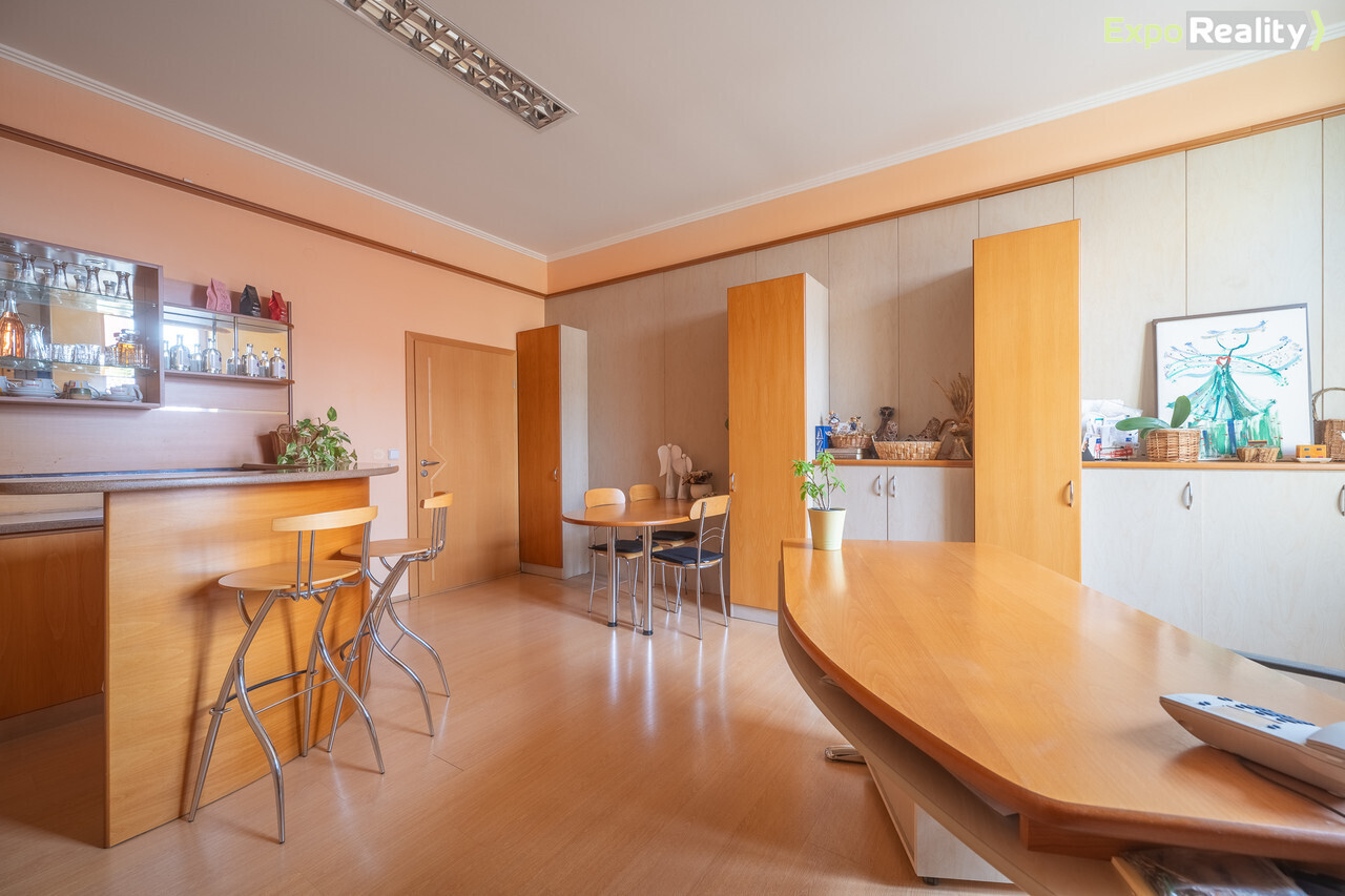 - Kancelář (74 m²) – dvě místnosti, kuchyňka, bar, sociální zařízení (možnost přestavby na další byt)