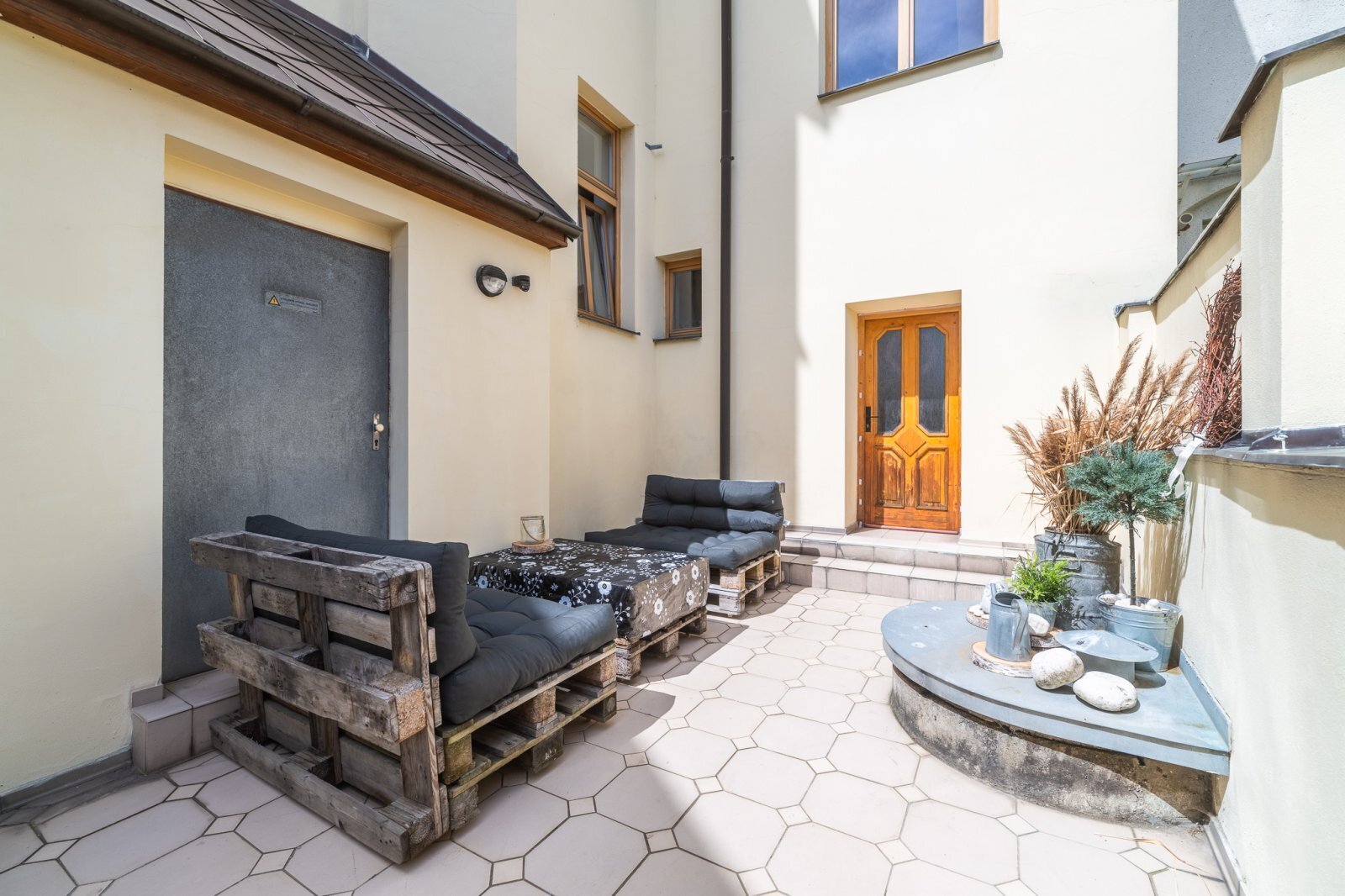 Vlastní boční vstup, ideální pro kavárnu, vinotéku, ateliér, provozovnu nebo jiné komerční využití. V současnosti je zde zavedená pražírna kávy.