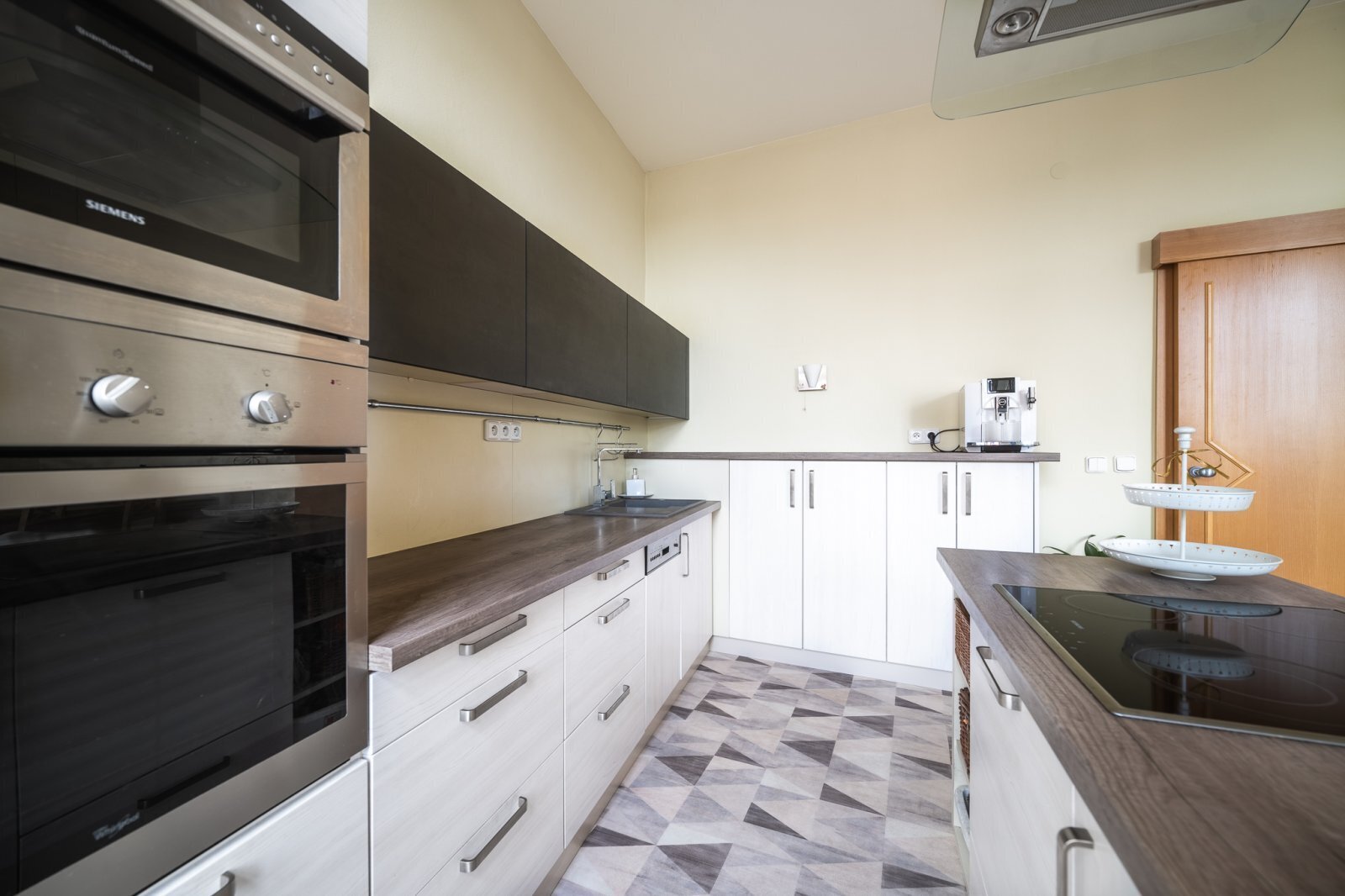 Bytová jednotka 2+1 (nově zrekonstruovaná) s prostornou terasou 104 m² – vstupní chodba, koupelna s WC, kuchyně s nadčasovou linkou, jídelní kout, obývací pokoj a ložnice se vstupem na terasu. Menší bytová jednotka 1+kk (24 m²) – pokoj s vlastním sociálním zařízením. Kancelář (74 m²) – dvě místnosti, kuchyňka s barem, sociální zařízení – lze snadno přestavět na byt.
