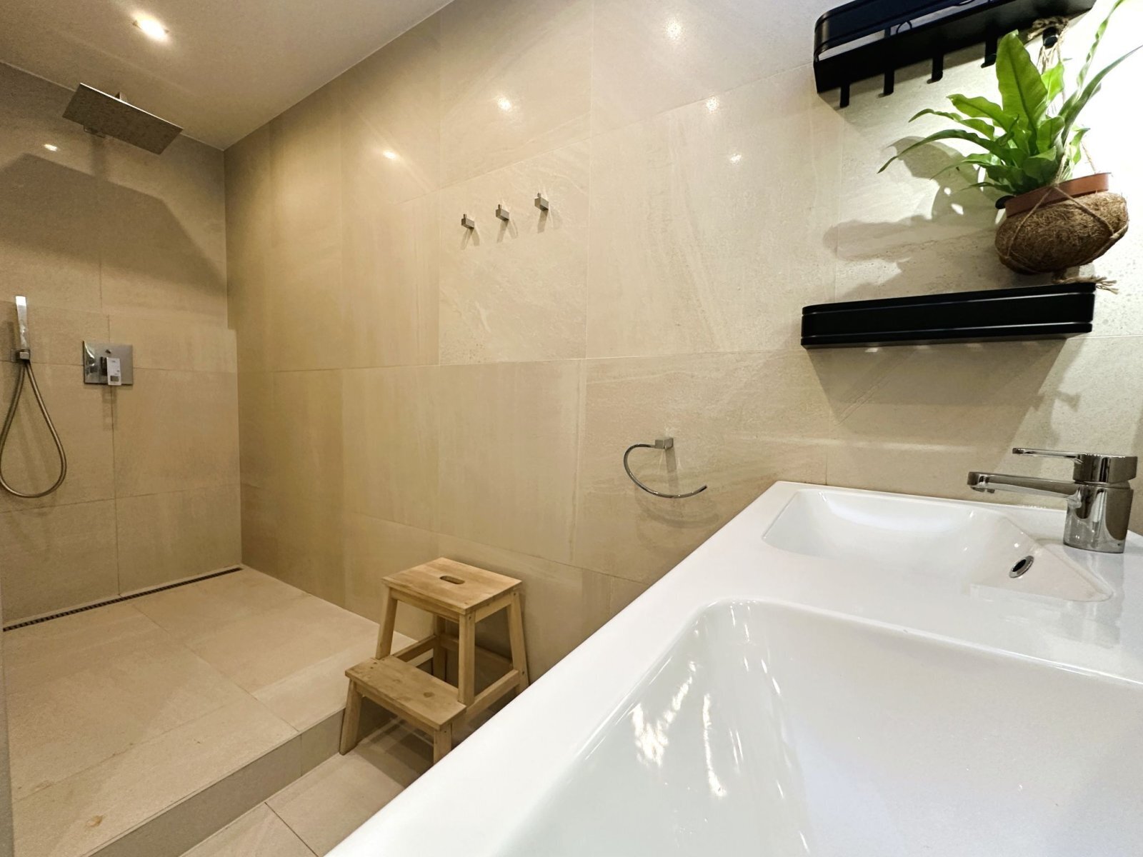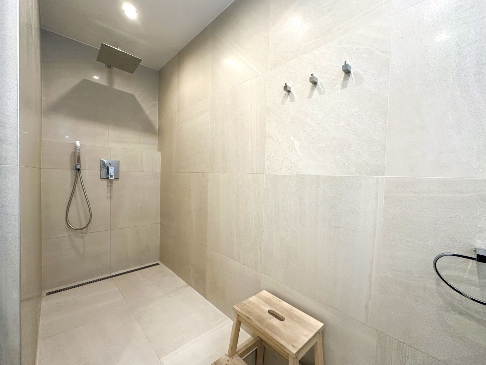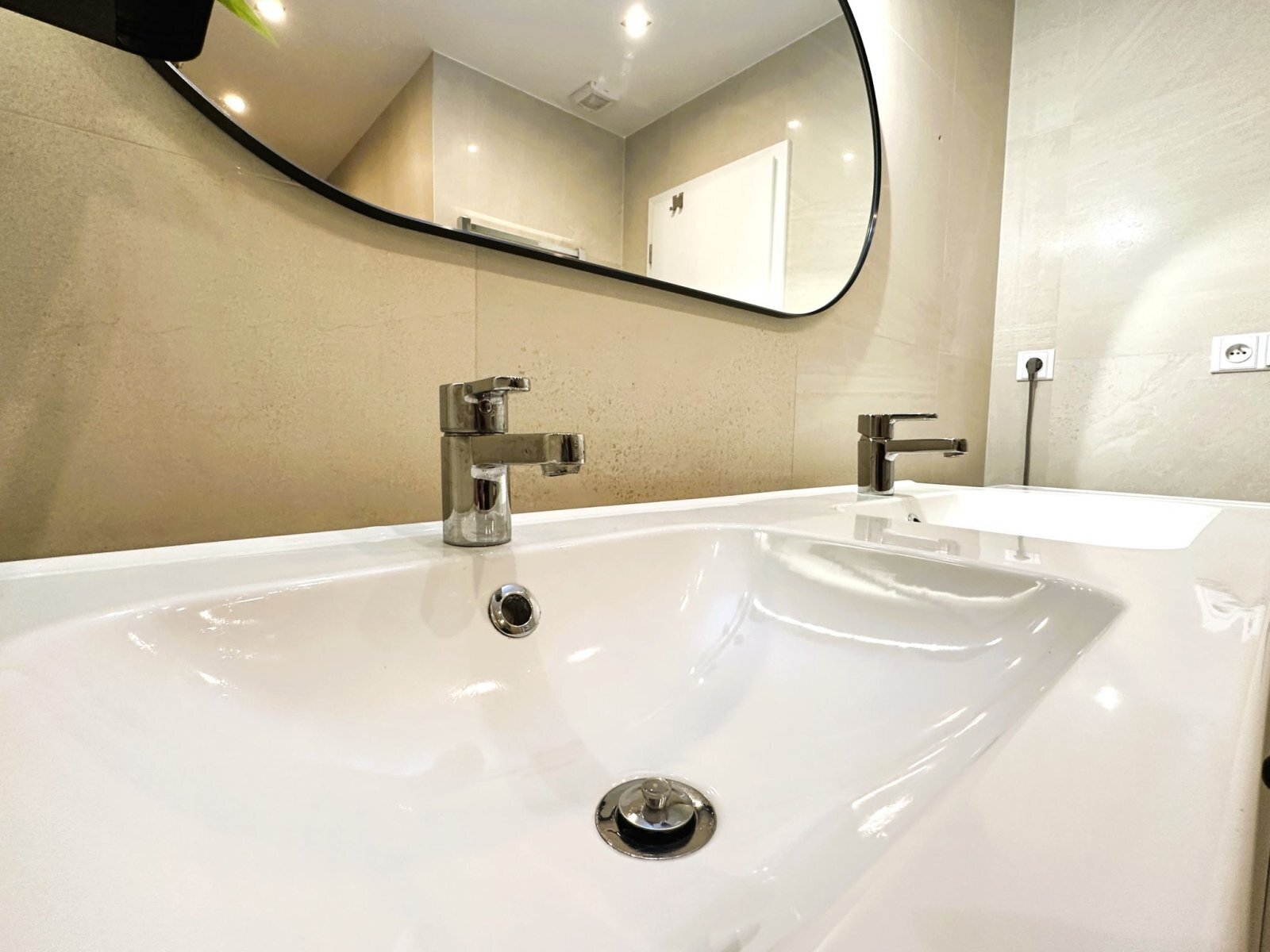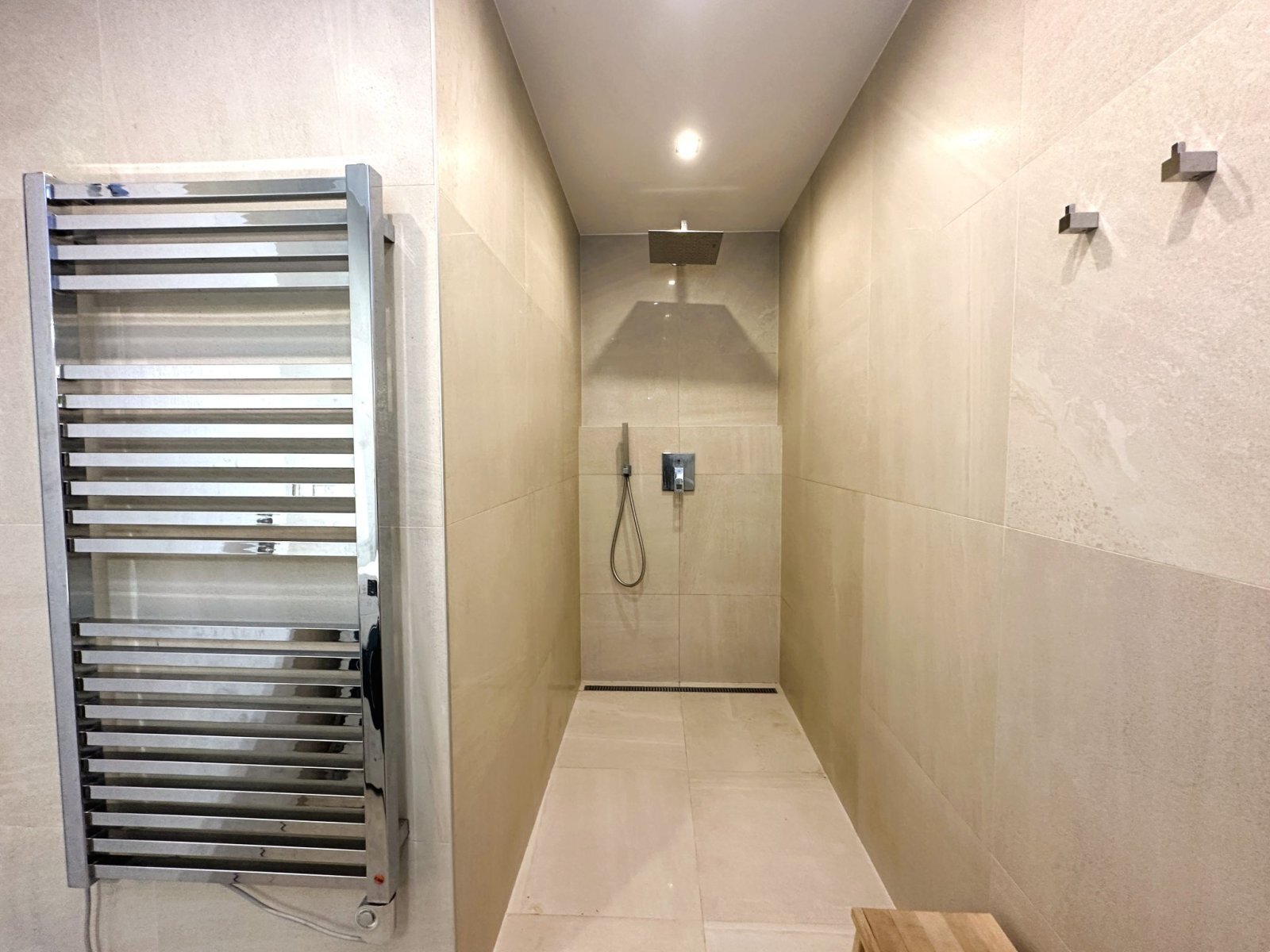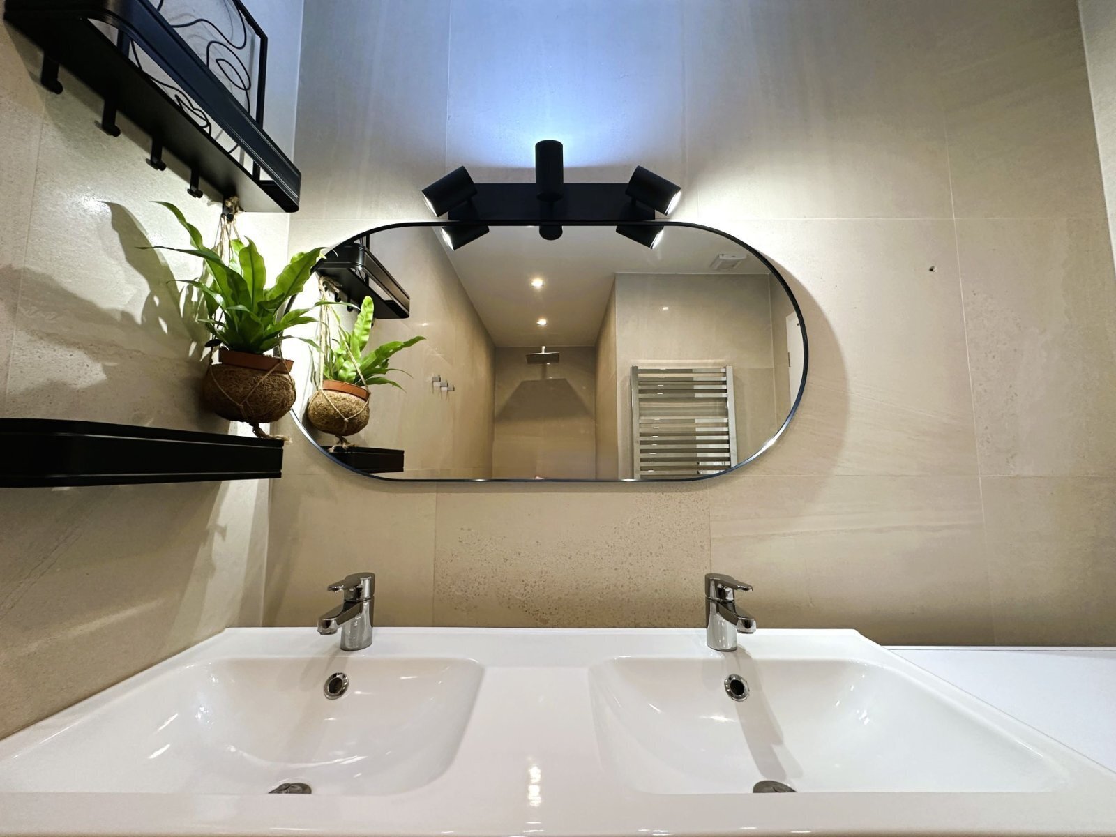 Kuchyně je vybavena novou kuchyňskou linkou s dřezem, indukční varnou deskou, troubou, digestoří a myčkou nádobí. Koupelna nabízí velký sprchový kout, otopný žebřík, dvojité umyvadlo, úložné skříňky a přípojku na pračku a sušičku, WC je samostatné. V bytě jsou instalovány žaluzie.