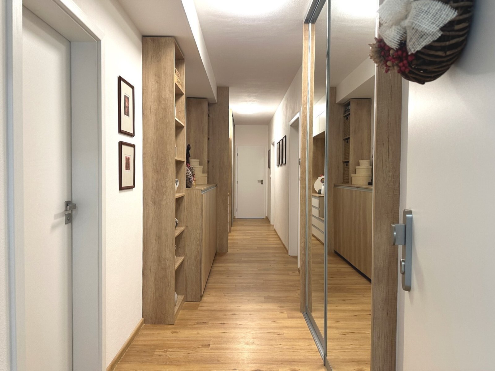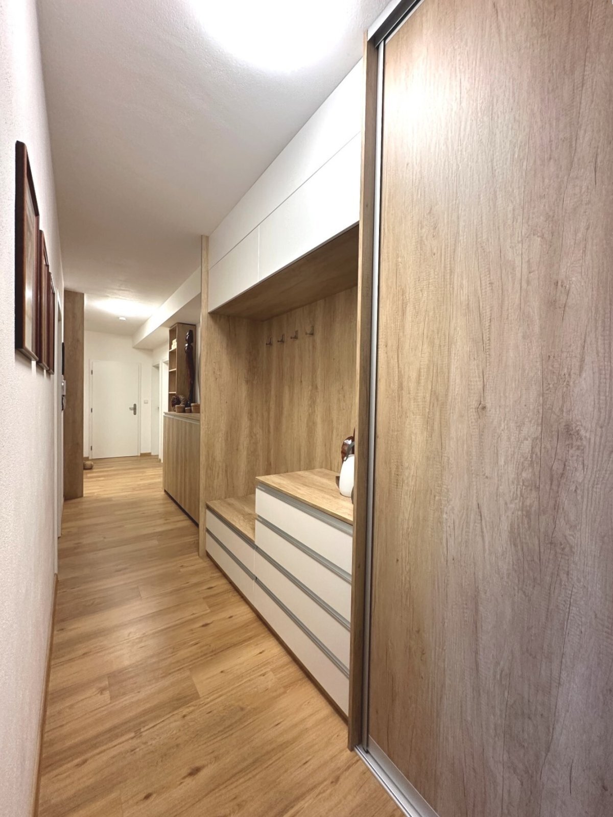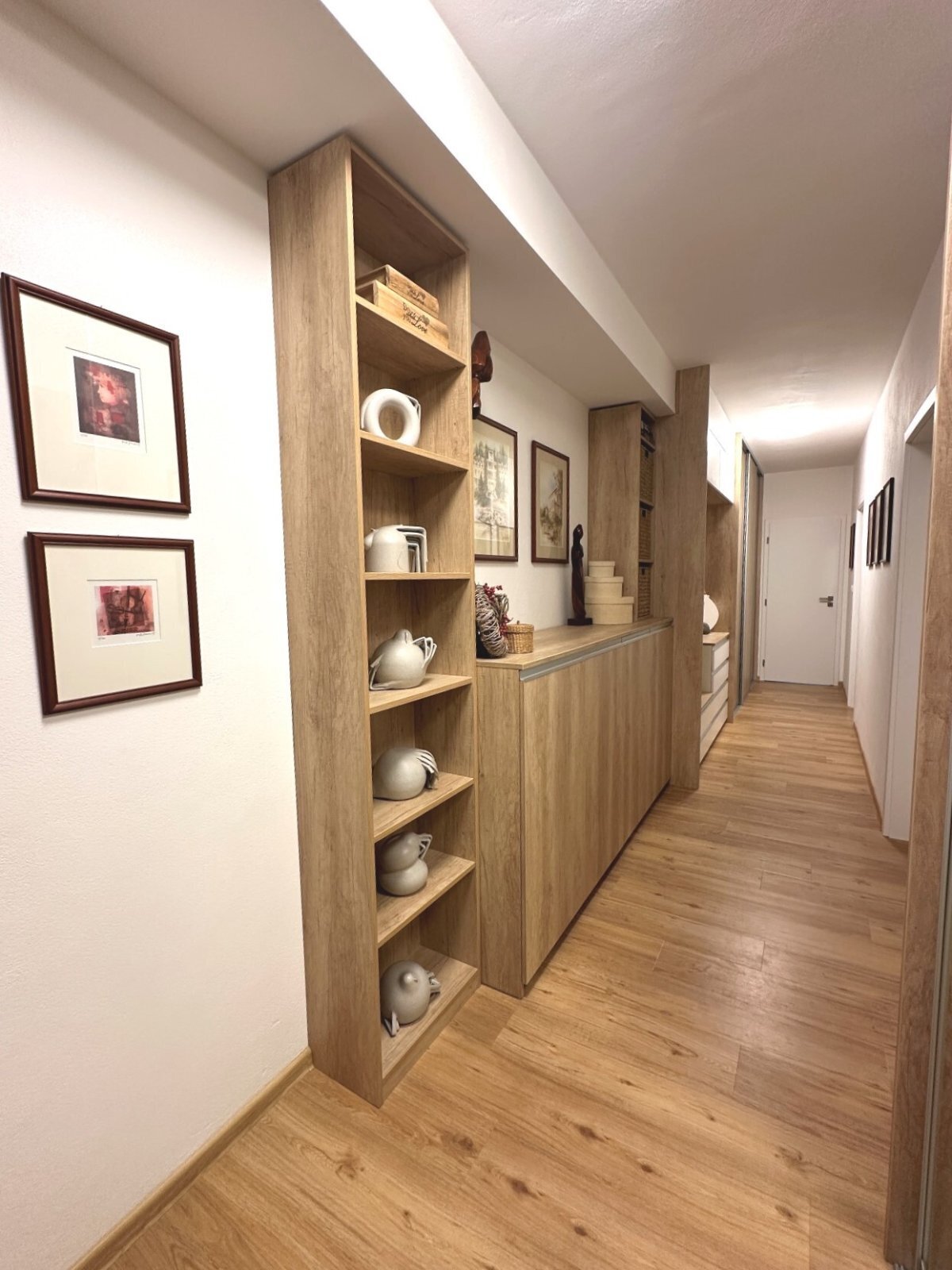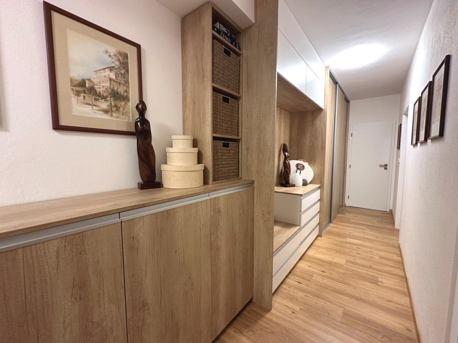 - vstupní chodba s vestavěnými skříněmi a úložnými prostory