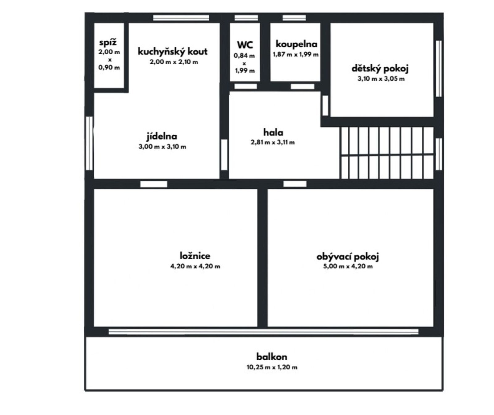 - dvougenerační dispozice – možnost dvou bytů, bydlení dvou rodin, podnikání