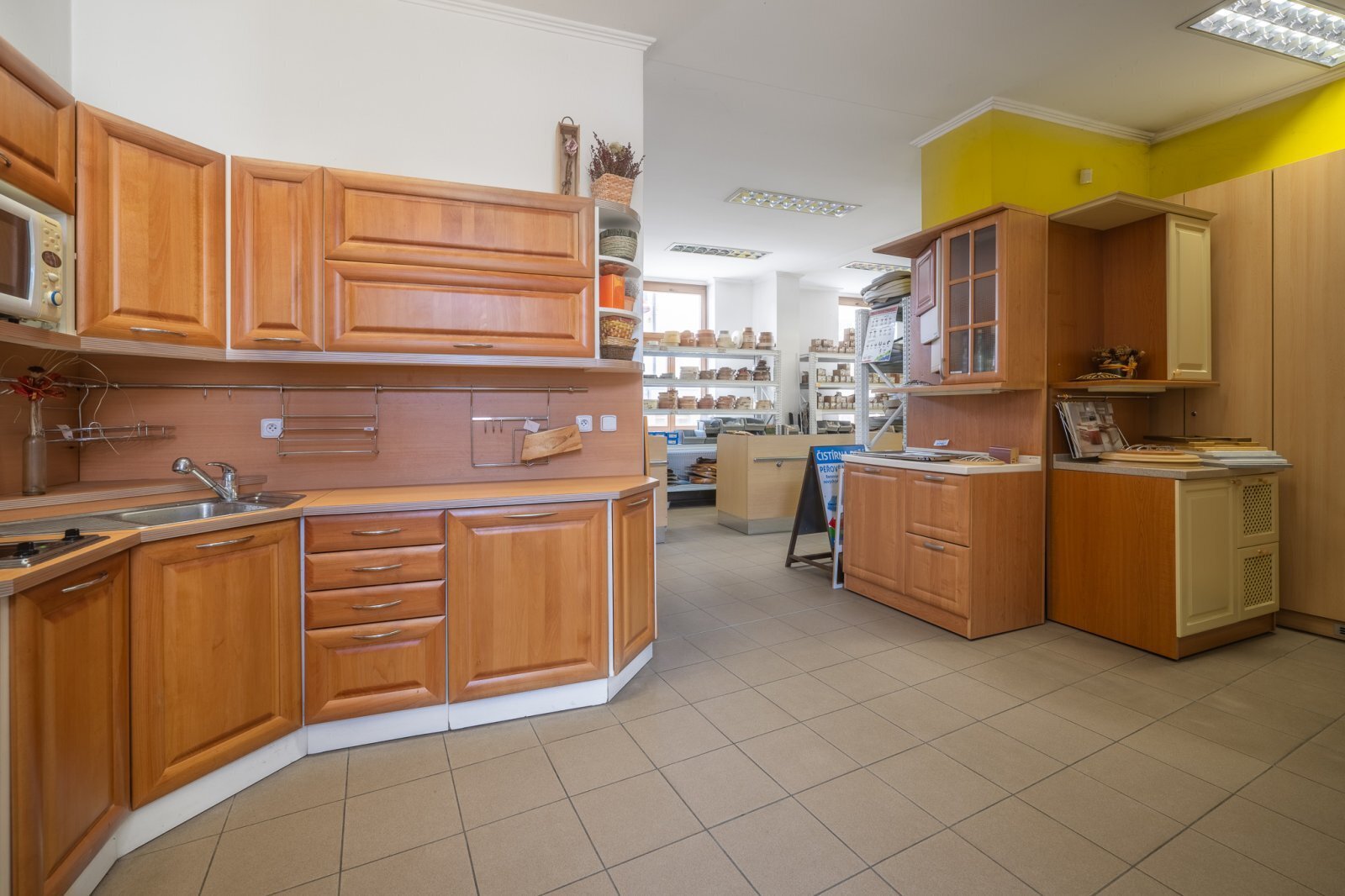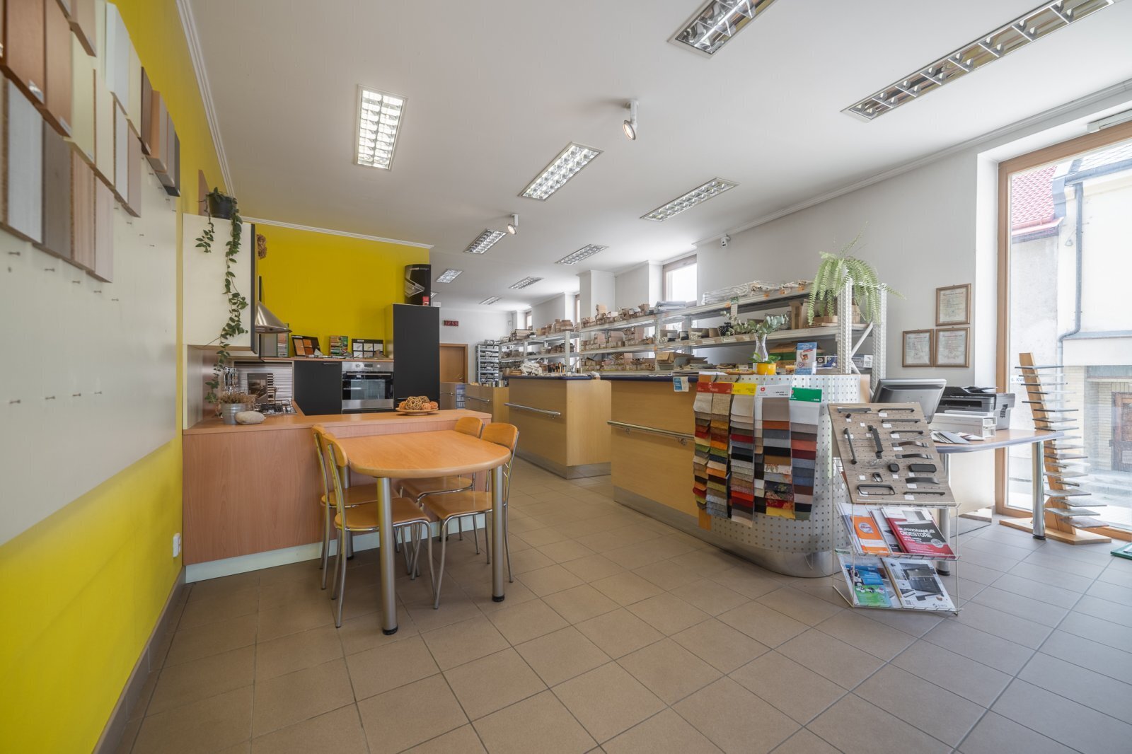 Prostorné obchodní prostory, dvě kanceláře, zázemí s kuchyňkou, dvě sociální zařízení, technická místnost a výtah. Lze rozdělit na dvě samostatné části s vlastními vstupy a zázemím. Vedlejší vstup vede na schodiště do dalších podlaží a na terasu.