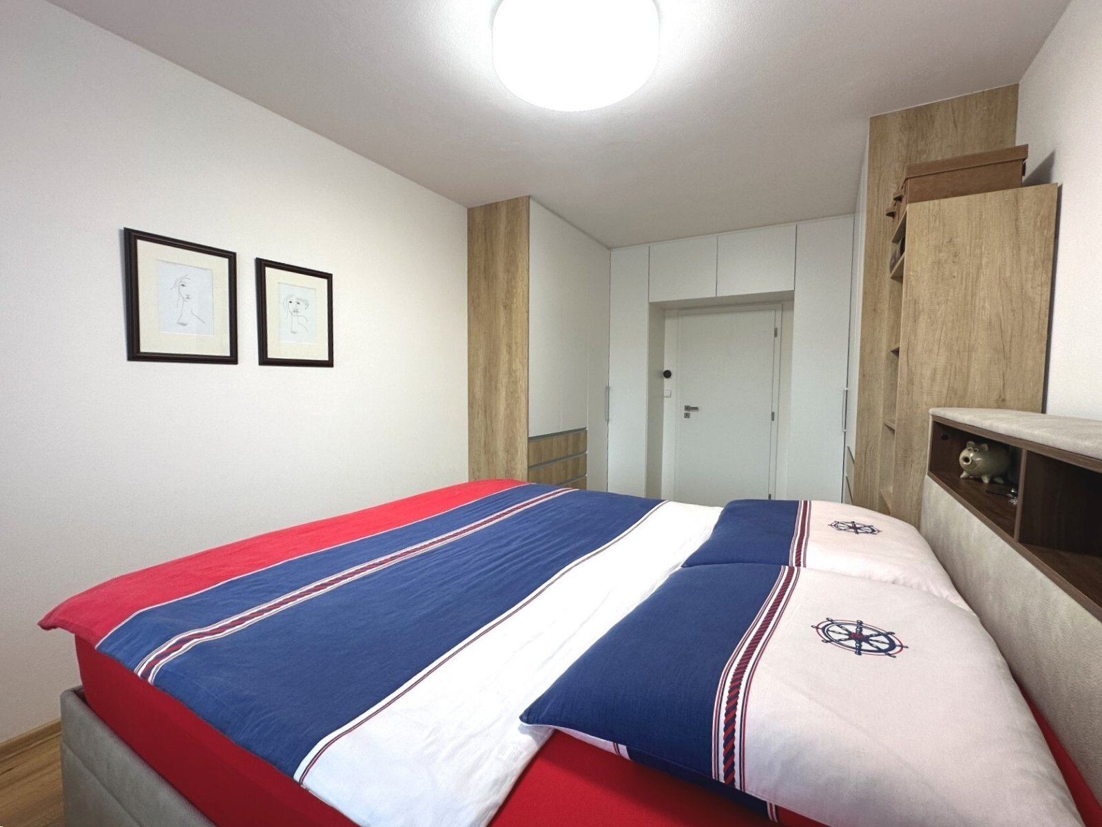 - pokoj s dvojpostelí a vestavěnými skříněmi