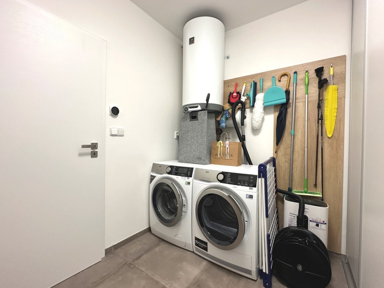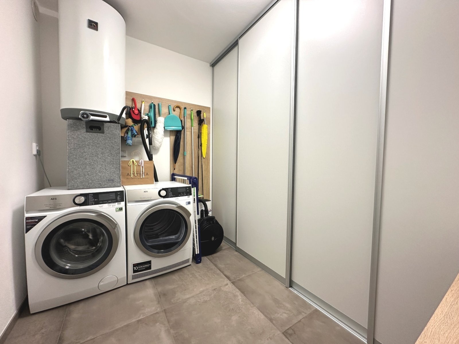 - technická místnost s pračkou, sušičkou a velkým úložným prostorem