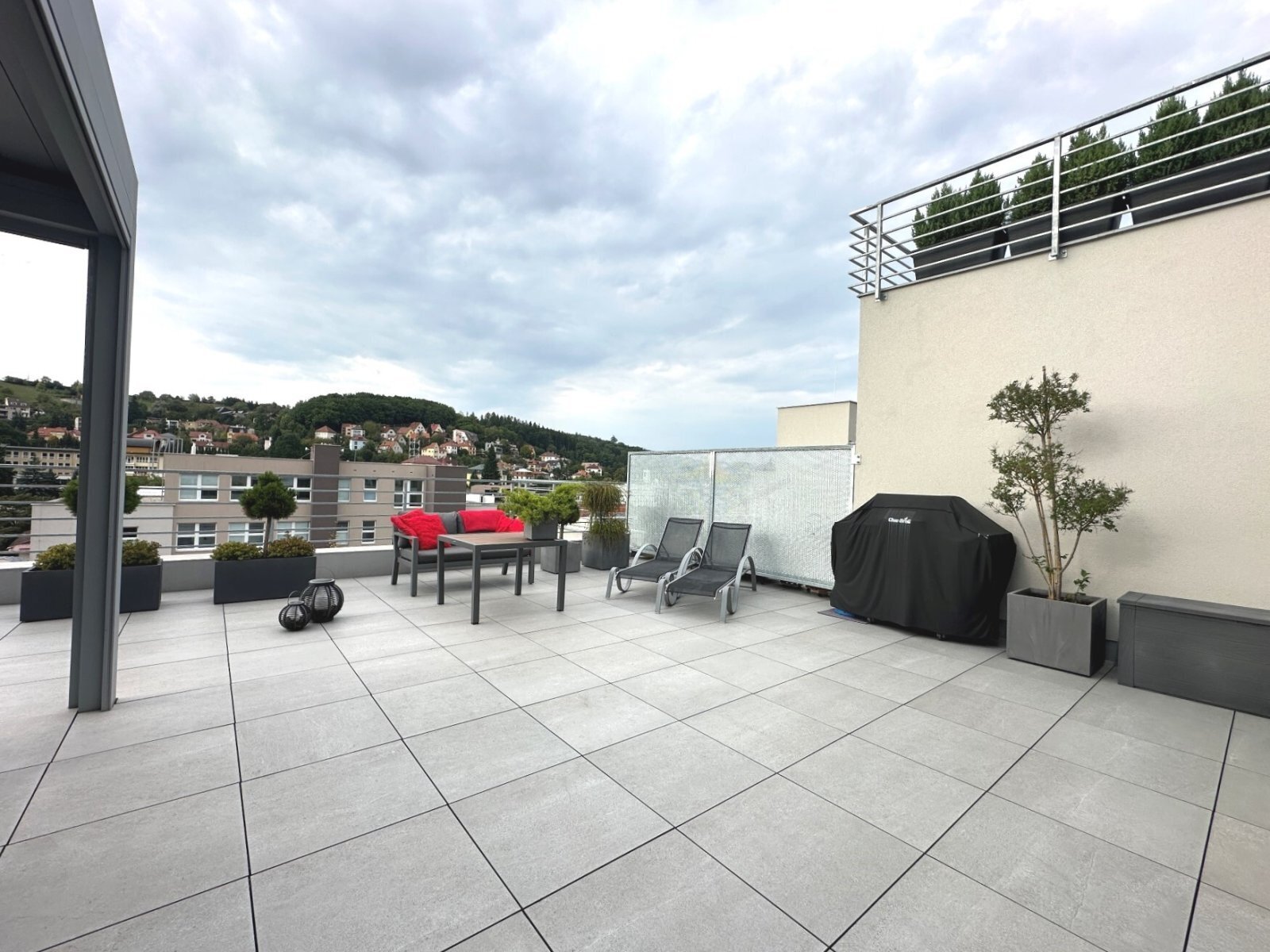 Tento byt je ideální volbou pro ty, kteří hledají spojení nadstandardního bydlení, komfortu a prestižní lokality. Dominantou je prostorná terasa s možností zastřešení a vybavením, která poskytuje soukromí i dostatek místa pro odpočinek a setkávání s rodinou či přáteli.