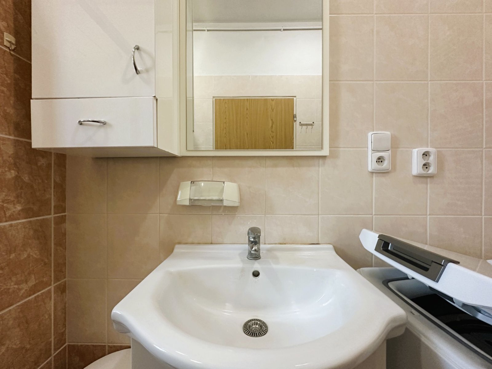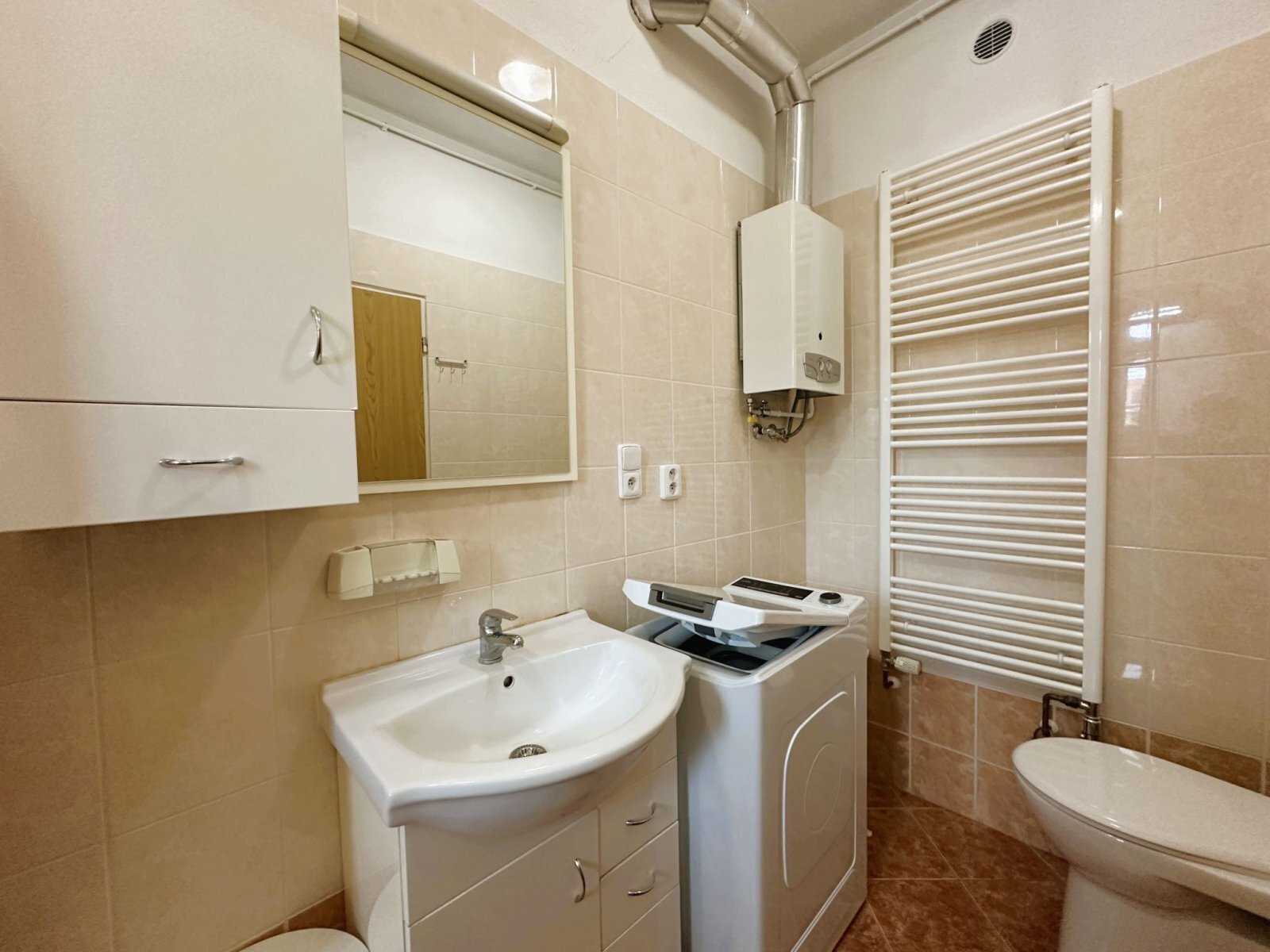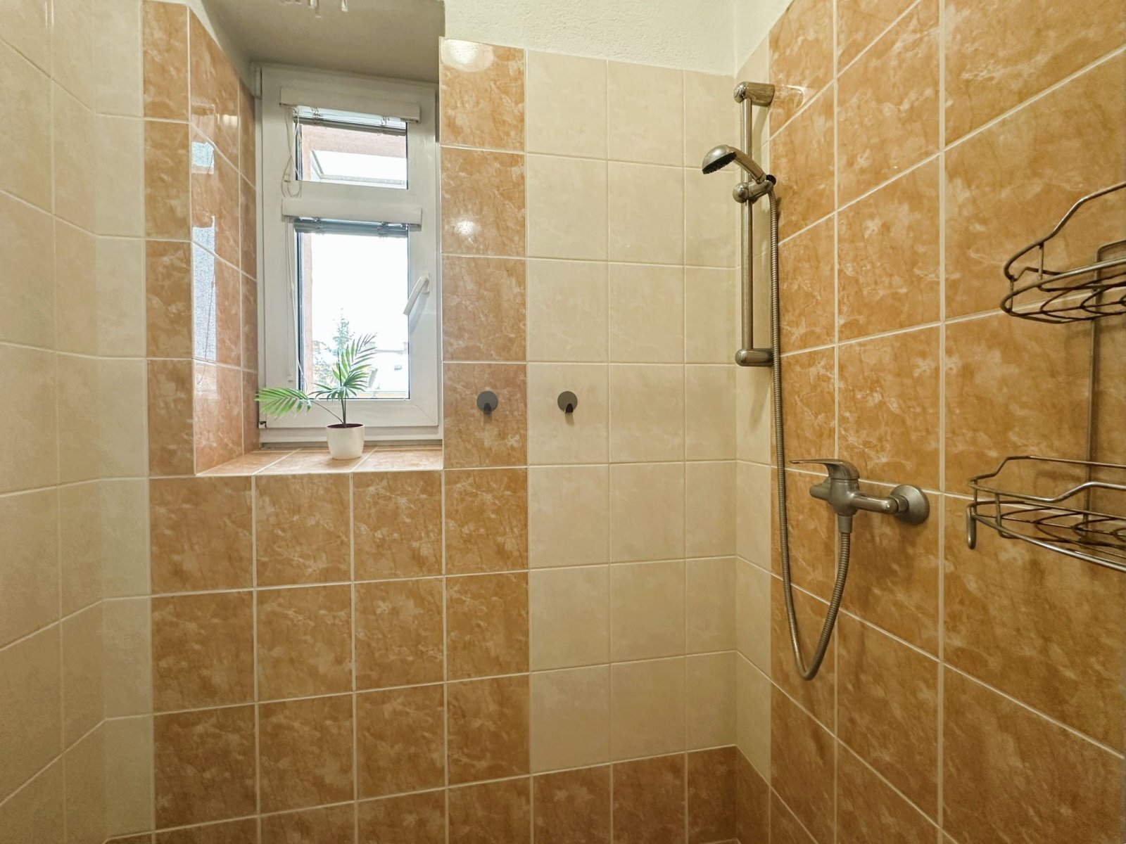 - koupelna s oknem: sprchový kout, umyvadlo, WC a místo pro pračku